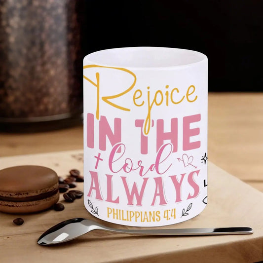 Rejoice In The Lord Always Ceramic Coffee Mug Bible Verse Cute Glass Cup, 11oz Espresso Cups for Everyday Wear