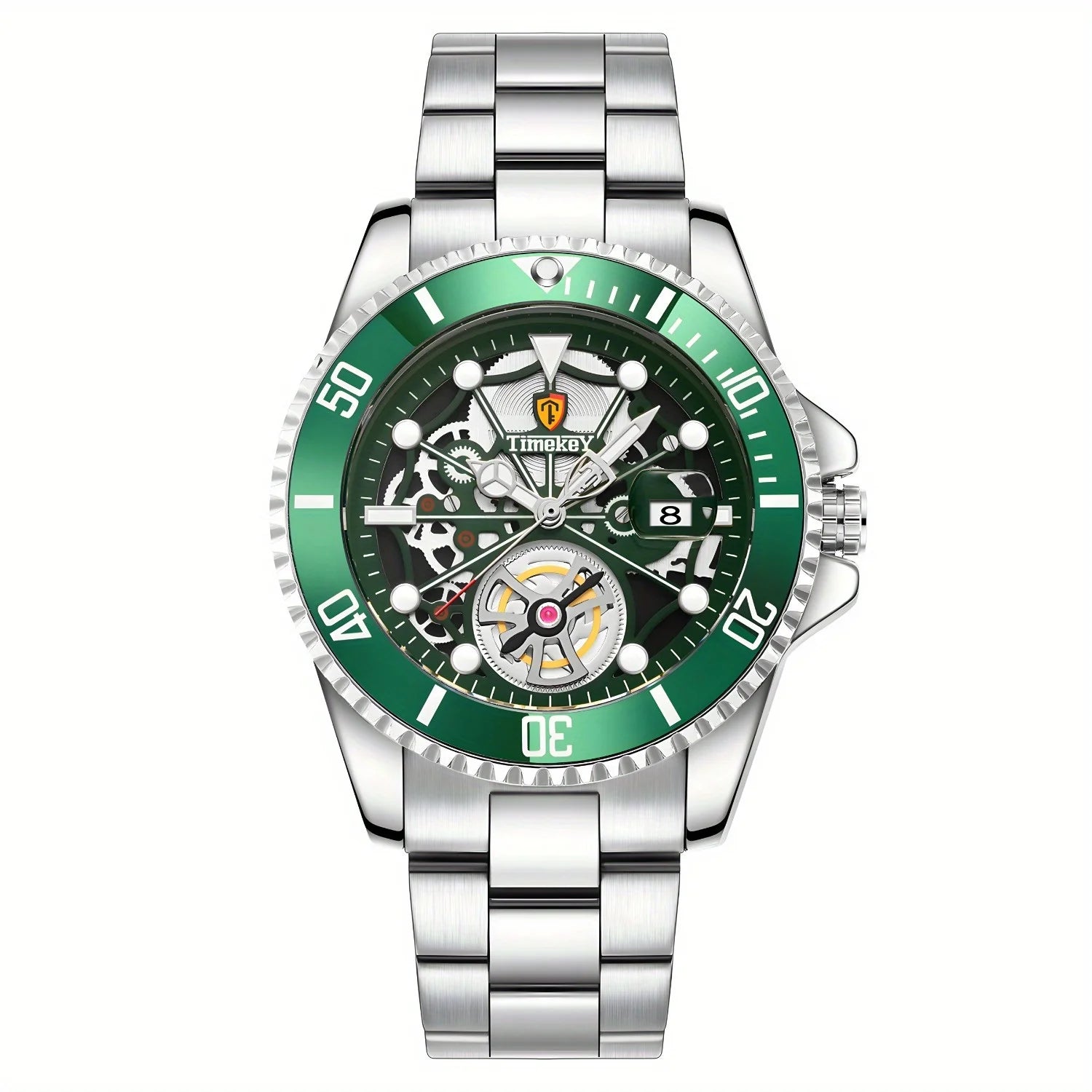 1pc men's quartz watch, mechanical watch shape, big brand design, rotating bezel, business, daily wear.