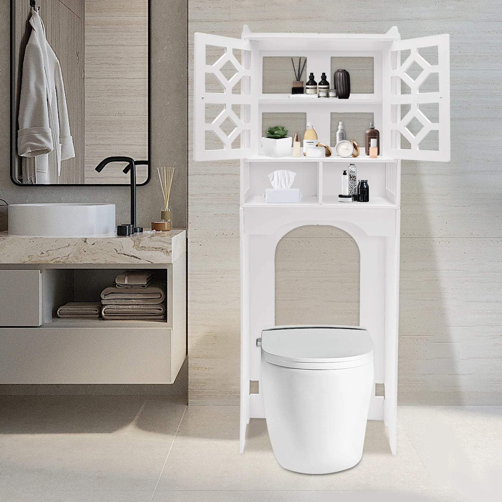 4 Tier Over the Toilet Storage Cabinet Bathroom Organizer Waterproof Raised Leg Smooth Edge Large Capacity/Easy to Install