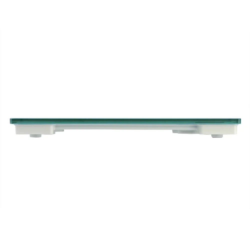 Designed with a spa blue glass finish, this scale is stylish and accurate. An 11. 8" x 11. 8" platform is made from durable, tempered glass. The 3. 2" x 1. 5" display makes it easy to view weight readings up to 400 lb. 2 AAA batteries included.