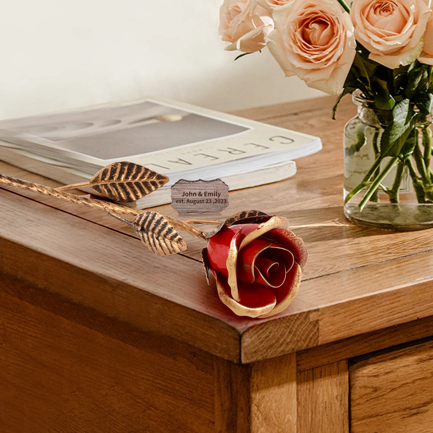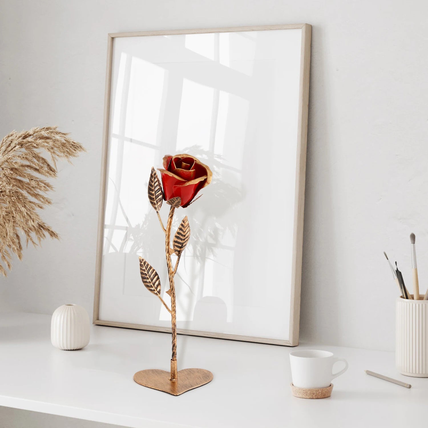 Hand-Forged Wrought Iron Red Metal Rose Romantic Everlasting Love Gift for Mother Day