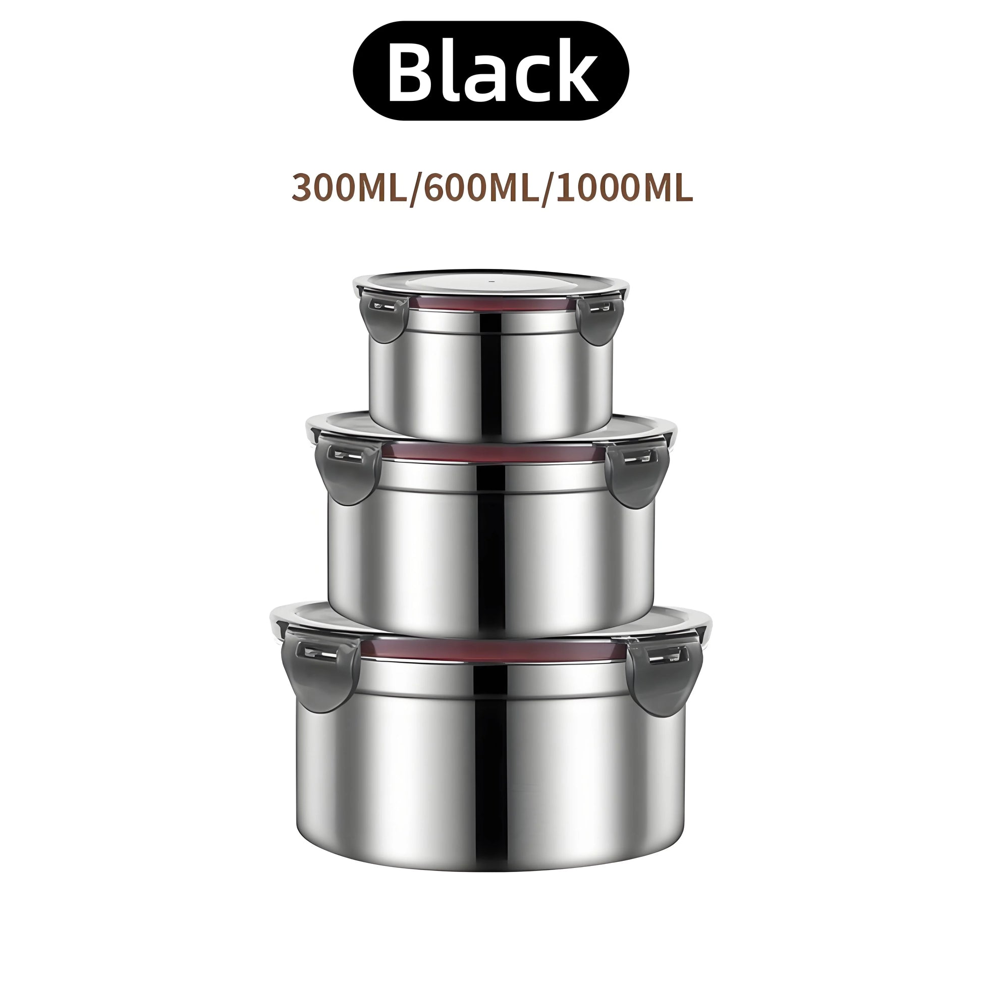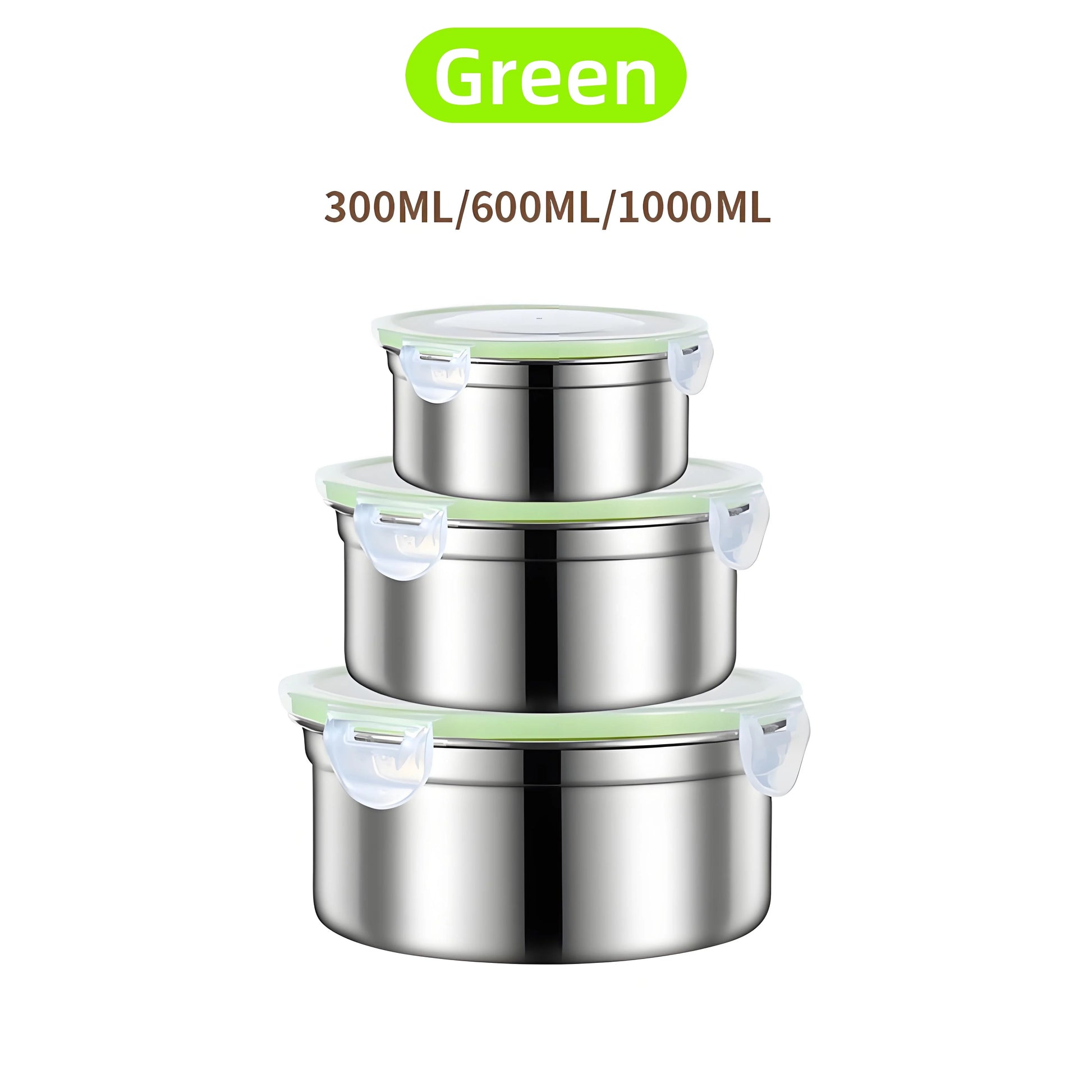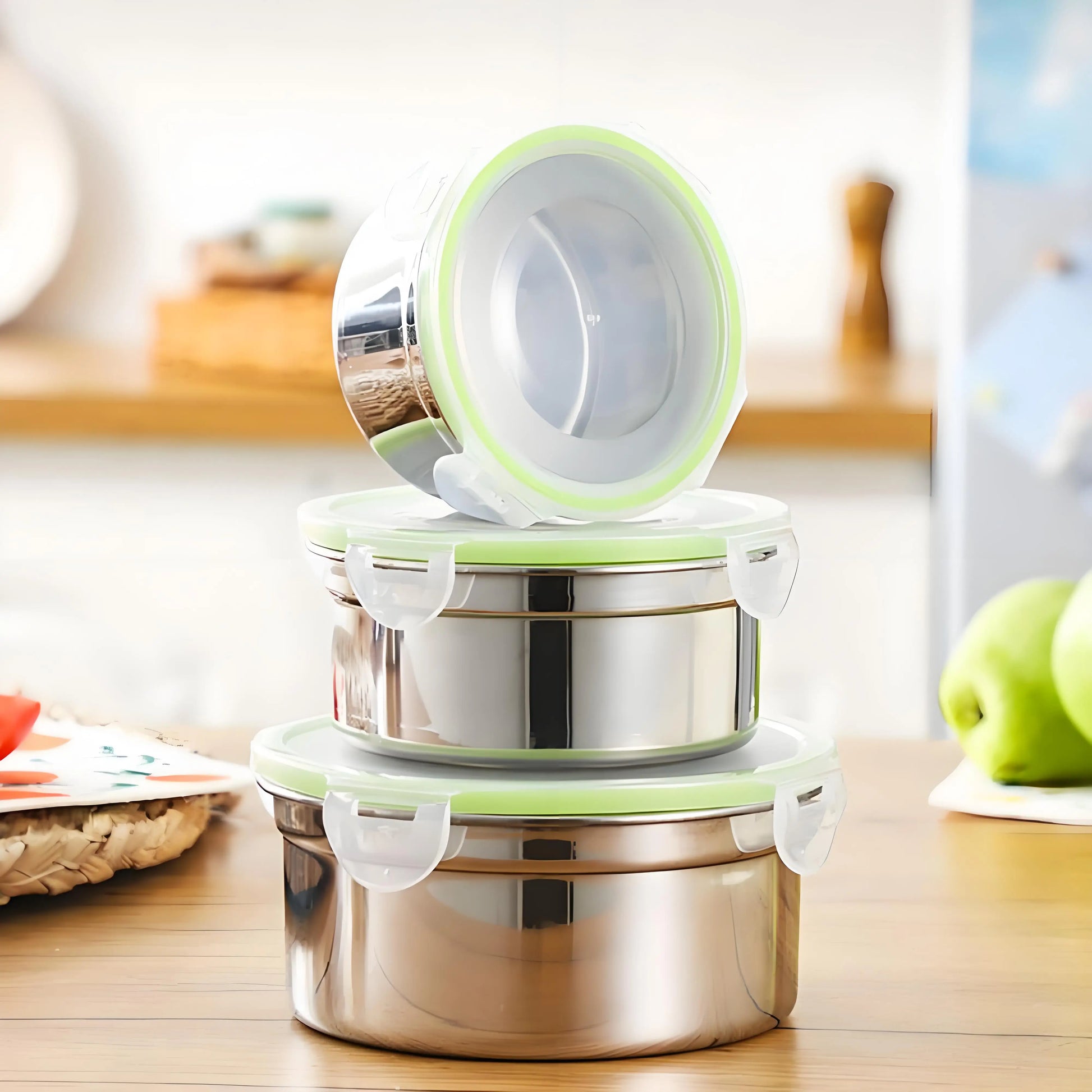 Steel Meal Prep Set - 3-Piece Round Containers ✔Leakproof & Dishwasher Safe (Office/Gym FreshLock Seal)