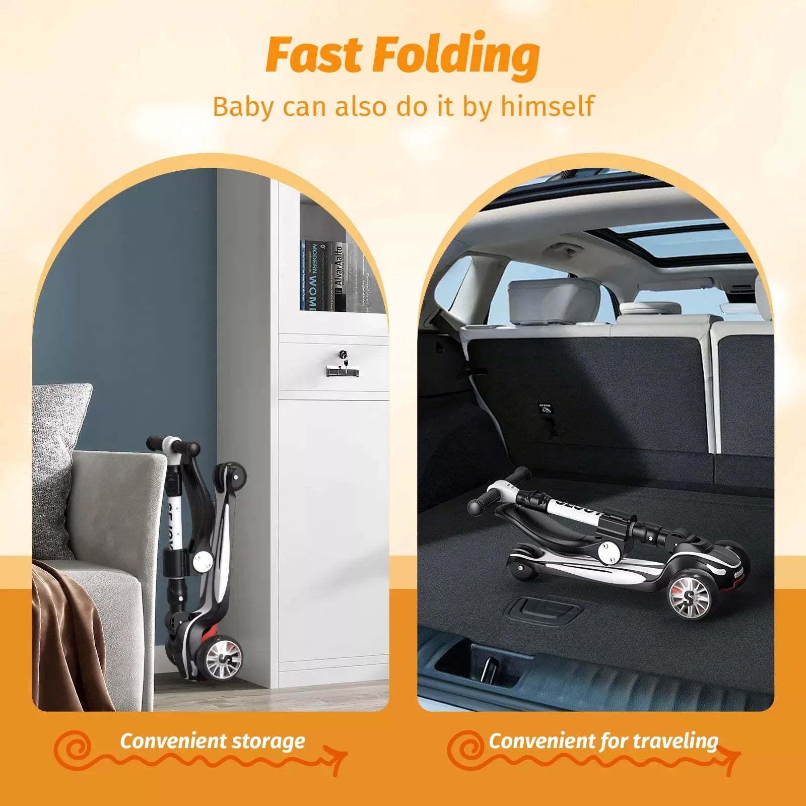 This is a high value stand and sit scooter for children aged 3-12, with sensitive braking system, flexible braking; comfortable removable seat, can sit or stand; wide foot space, don't worry about the little feet that have nowhere to rest; silent light-emitting tyres, bring your child a cool riding experience; stable overall construction, can make your child ride safely; this is a necessary accompaniment to your child's growth! Toys, can exercise your child's sense of balance, improve physical fitness, exercise strength, 3-12 years old children can be applicable, is an unparalleled high value toys!